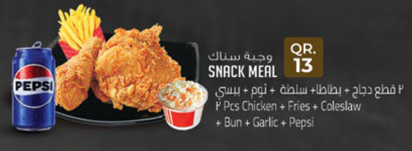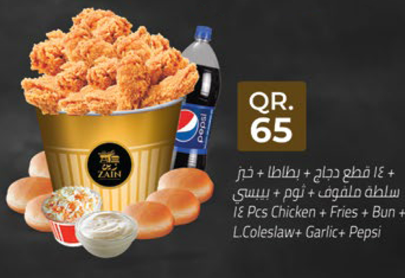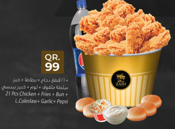 ٢١ قطع دجاج + بطاطا + خبز+ سلطة ملفوف + ثوم + كبير بيبسي