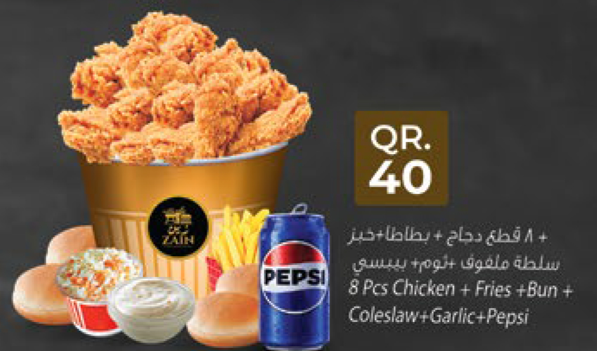 ٨ قطع دجاج + بطاطا+ خبز +سلطة ملفوف +ثوم +بيبسي